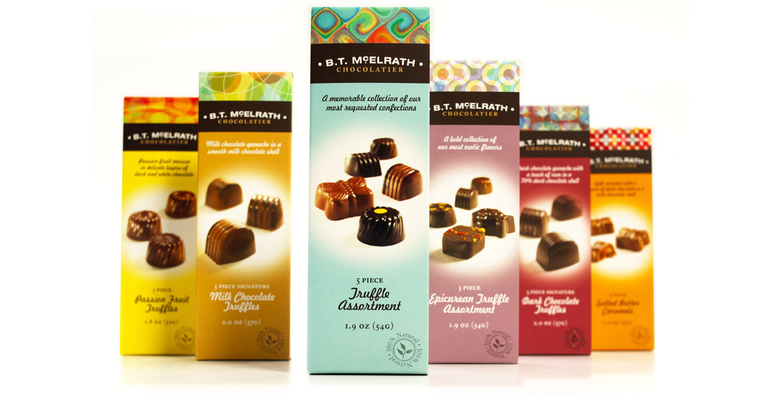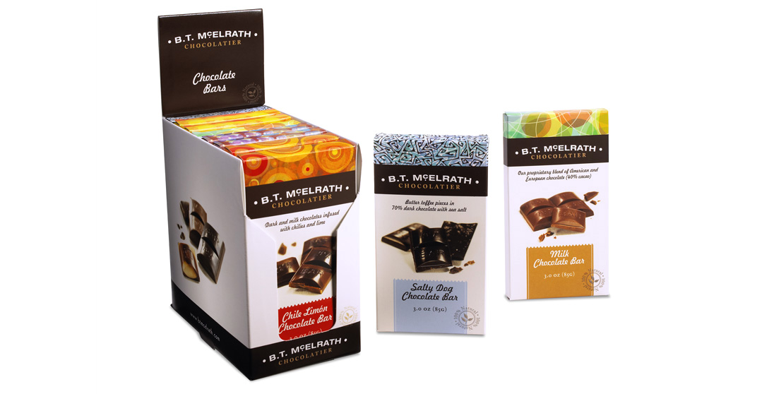 Some assignments are tastier than others. That’s just the way it is. Like when we were asked to create packaging to highlight B.T. McElrath’s irresistible line of chocolate bars. After much time spent sampling each and every chocolate — all in the name of research — Scales set out to design packaging as stunning as the chocolates themselves. We created custom patterns so each flavor could be visually unique, then applied the fresh designs to the full line of bars and truffles in order to appeal to a younger, contemporary audience of chocolate lovers.